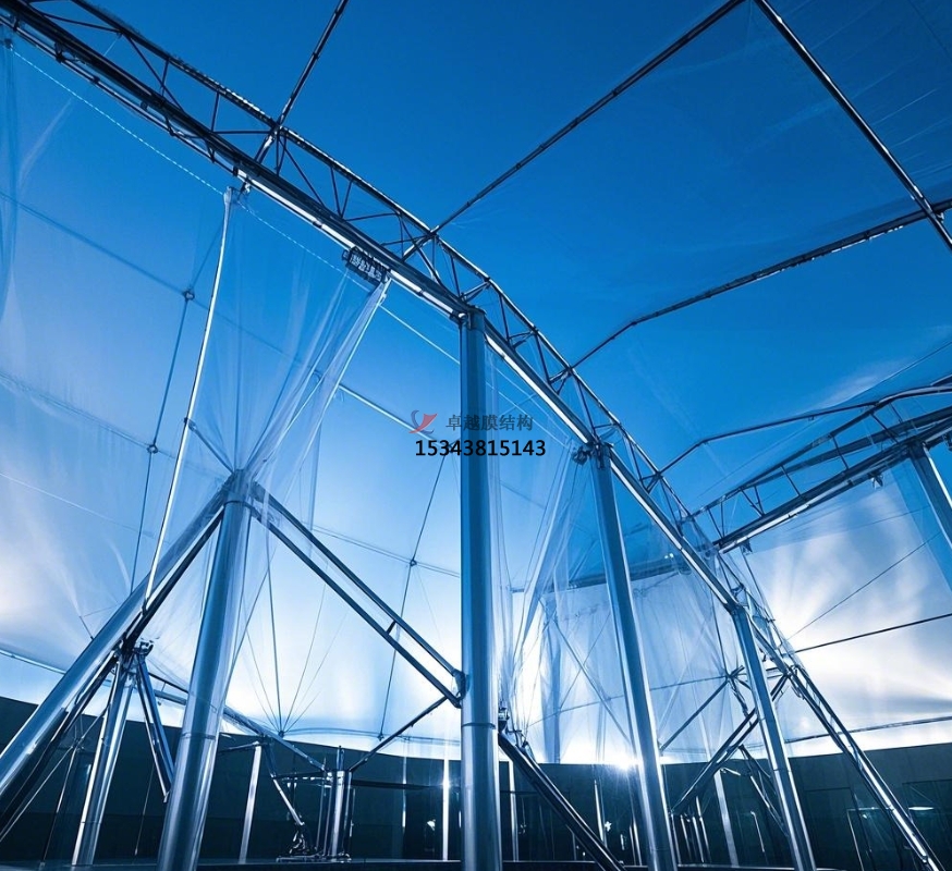 充氣膜結(jié)構(gòu)則依托內(nèi)部氣壓來(lái)堅(jiān)持膜材的形狀。這種類型的膜結(jié)構(gòu)在一些臨時(shí)性的小型舞臺(tái)或?qū)臻g要求較為特別的扮演場(chǎng)景中運(yùn)用較為廣泛。它經(jīng)過向膜材內(nèi)部繼續(xù)充氣,使膜體膨脹構(gòu)成所需的空間形狀。例如,在某些兒童劇扮演中,為了營(yíng)造出夢(mèng)境、童話般的氣氛,會(huì)采用充氣膜結(jié)構(gòu)建立舞臺(tái)。充氣后的膜體出現(xiàn)出圓潤(rùn)、心愛的造型,與兒童劇的主題相輔相成,而且充氣膜結(jié)構(gòu)建立速度快,可依據(jù)扮演需求快速調(diào)整空間布局,為扮演的順利進(jìn)行供給了便當(dāng)。