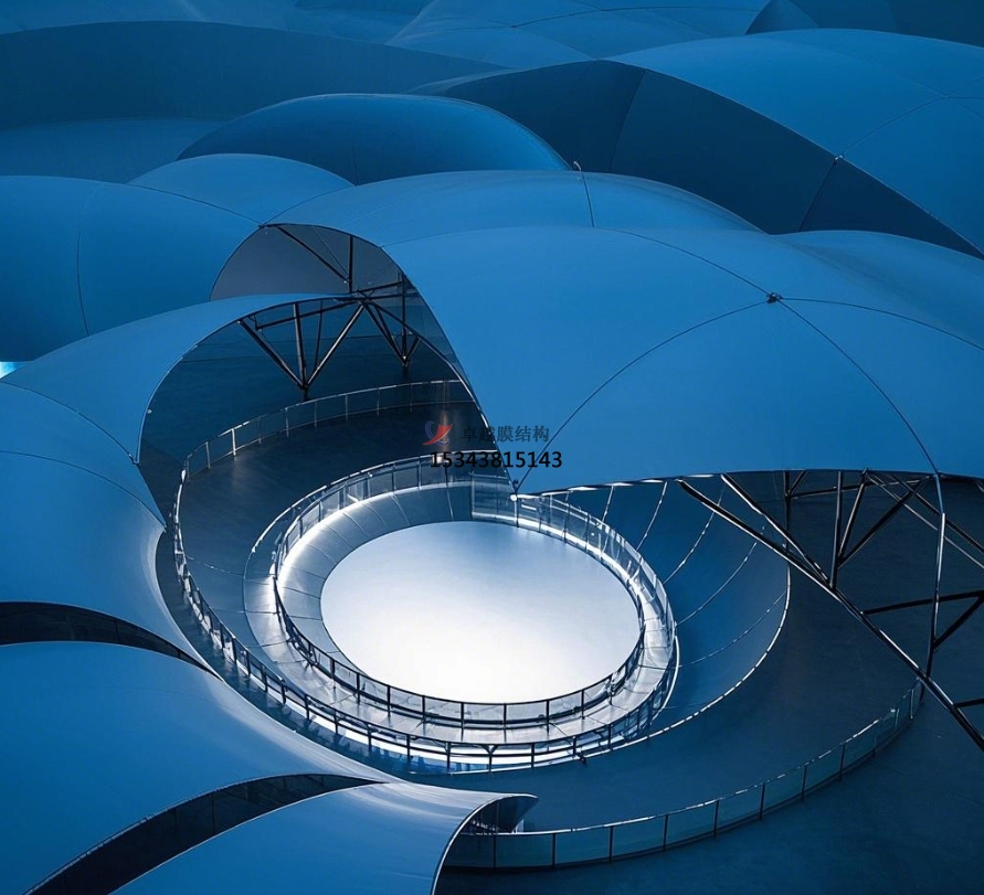 形狀多樣性:膜結(jié)構(gòu)憑借其柔性資料的特性,可以完成自由空間曲面的規(guī)劃,造型豐厚多樣。從簡(jiǎn)練流通的單曲面到復(fù)雜多變的多曲面,從高雅的弧形到賦有張力的異形,膜結(jié)構(gòu)舞臺(tái)可以依據(jù)扮演主題、場(chǎng)所環(huán)境以及規(guī)劃師的創(chuàng)意,塑造出千變?nèi)f化的形狀。如在一場(chǎng)以 “天然之舞” 為主題的舞蹈扮演中,舞臺(tái)膜結(jié)構(gòu)規(guī)劃成了一片隨風(fēng)飄動(dòng)的樹葉形狀,膜材的輕柔質(zhì)感與樹葉的靈動(dòng)形狀完美結(jié)合,為舞蹈藝人們打造了一個(gè)充溢天然氣味的扮演空間,讓觀眾似乎置身于森林之中,增強(qiáng)了扮演的沉溺感與藝術(shù)感染力。