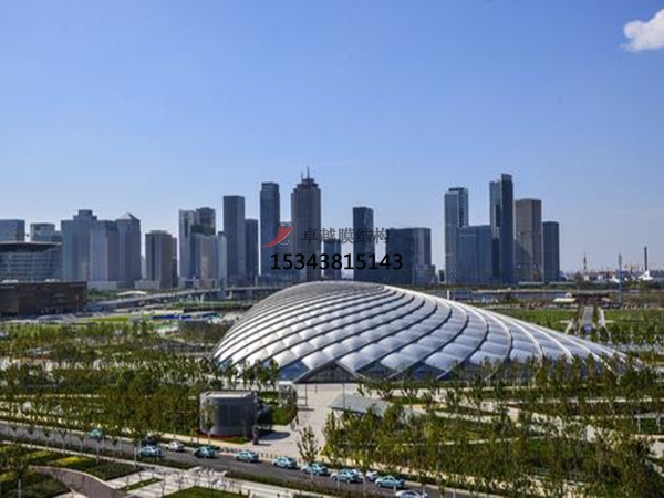 中國現(xiàn)代空間結(jié)構(gòu)的發(fā)展受到了西方更好的先進(jìn)技術(shù)的影響。近幾年來,在膜結(jié)構(gòu)應(yīng)用上顯示了活躍的趨勢(shì)。雖然一開始工程規(guī)模不大,但已逐漸擴(kuò)展到更大的面積和跨度。所采用的技術(shù)與材料在某種程度上還要依靠國外,但預(yù)計(jì)會(huì)有更多的工程依靠自己的力量來完成。在過去十年中,中國的許多城市都在籌劃建設(shè)新的體育設(shè)施。由于其重量很輕的優(yōu)點(diǎn),膜結(jié)構(gòu)往往被采用。體育建筑可以說是膜結(jié)構(gòu)在中國應(yīng)用的打破口。1997年之前,只建造了少量的小型與中型的膜結(jié)構(gòu),同年在上海舉行的第七屆全國運(yùn)動(dòng)會(huì),膜結(jié)構(gòu)被用在主體育場(chǎng)的看臺(tái)挑篷,總面積36100m2。這是中國靠前次將膜材制成的屋頂用在大面積的較久性建筑上,具有深遠(yuǎn)的影響。膜結(jié)構(gòu)還可用來覆蓋各種不同的小型建筑,如加油站、收費(fèi)站、服務(wù)中心、大門入口以及遮陽設(shè)施等。雖然每個(gè)工程的面積只有幾百平方米,但工程的數(shù)量很多,把全國的工程加起來,膜材的數(shù)量就很可觀了。 從多年來國內(nèi)外的實(shí)踐經(jīng)驗(yàn)來看,由于新材料、新形式的不斷出現(xiàn),膜結(jié)構(gòu)具有強(qiáng)大的生命力,必將是21世紀(jì)建筑結(jié)構(gòu)發(fā)展的主流。而ETFE建筑膜材以其優(yōu)良的材料特性,必將成為市場(chǎng)的主流膜材,其發(fā)展前景可觀,市場(chǎng)潛力巨大,面臨著良好的發(fā)展契機(jī)。