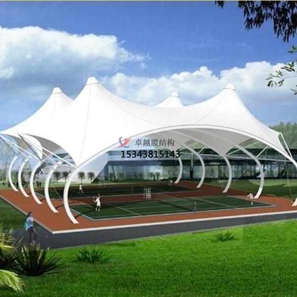 2、膜結(jié)構(gòu)是目前發(fā)展很快的一種新型空間結(jié)構(gòu),是一種效率極高的張力集成體系,可以充分發(fā)揮鋼索的強(qiáng)度與張拉整體結(jié)構(gòu)的空間作用。它通過鋼骨架、鋼索與膜材共同受力形式穩(wěn)定曲面來覆蓋建筑空間,具有高度的形體可塑性和結(jié)構(gòu)靈活性,即通過對膜材內(nèi)部施加一定的預(yù)張力,使其具備了抵抗外荷載能力,從而充當(dāng)結(jié)構(gòu)材料的一種結(jié)構(gòu)體系。我公司先后在阿勒泰地區(qū)承接球場頂棚罩棚設(shè)計(jì)施工案例,簡介如下: