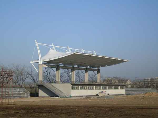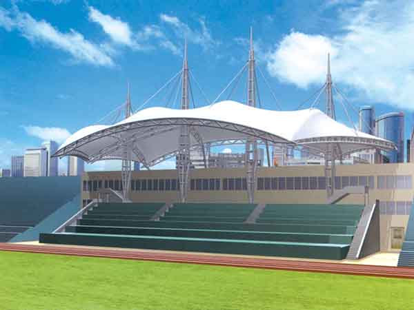 張拉膜看臺主要用于各類地方體育場主席臺雨棚,各類學(xué)校體育場看臺雨棚遮蓋,我公司是國內(nèi)較早從事大懸挑張拉膜結(jié)構(gòu)看臺設(shè)計施工的專業(yè)廠家,下面介紹一下我們在寧波市周邊縣市完工的一些張拉膜看臺設(shè)計施工案例,我公司先后在寧波周邊承接了寧波職業(yè)技術(shù)學(xué)院張拉膜看臺雨棚、寧波城市職業(yè)技術(shù)學(xué)院張拉膜看臺罩棚、浙江醫(yī)藥高等專科學(xué)校張拉膜看臺遮陽棚等設(shè)計施工項目,簡介如下: